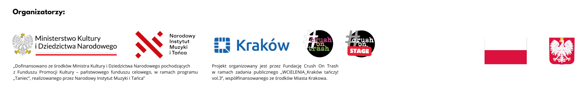 Projekt organizowany przez Fundację Crush On Trash w ramach zadania publicznego „WCIELENIA_Kraków tańczy! vol.3”, współfinansowanego ze środków Miasta Krakowa.